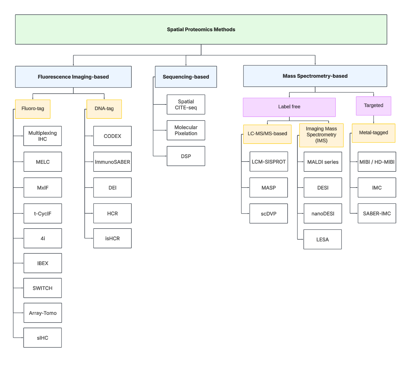 To navigate the spatial proteomics landscape, we divide it into three main categories: