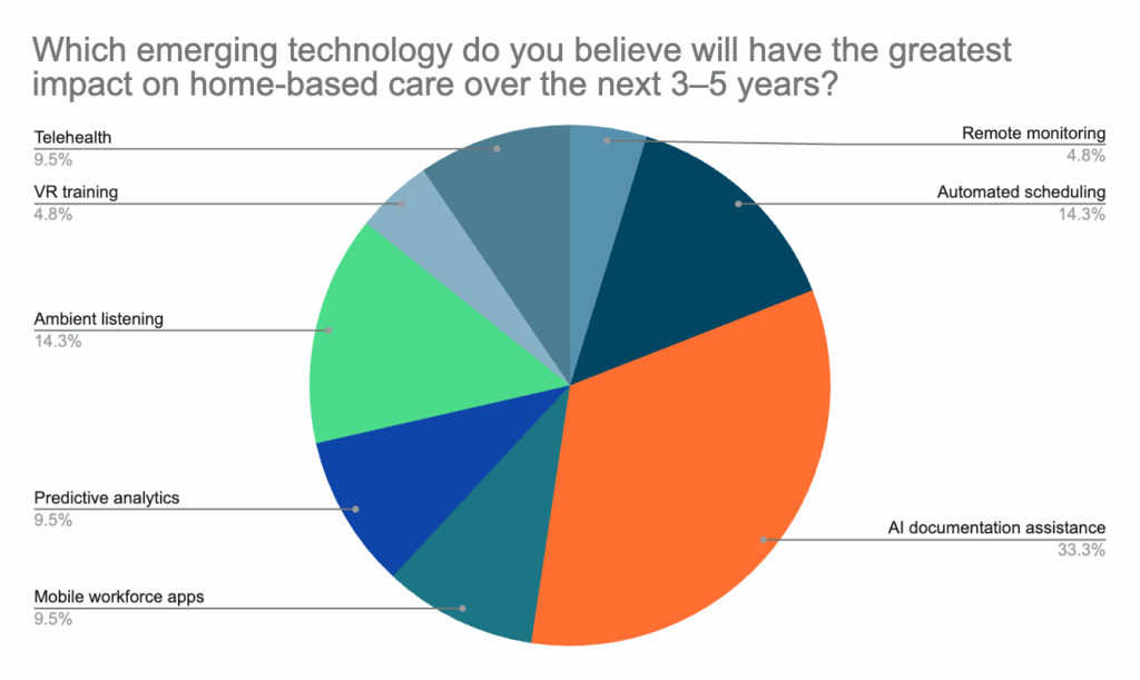 In addition to seeking out documentation tools in general, providers have zeroed in on ambient listening and automated scheduling as tools that will be most impactful in the home-based care industry over the next three to five years.